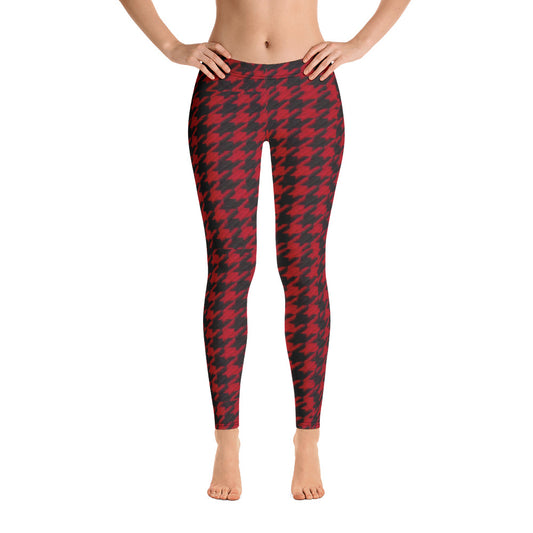Stylish Black and Red Houndstooth Leggings Yoga Pants