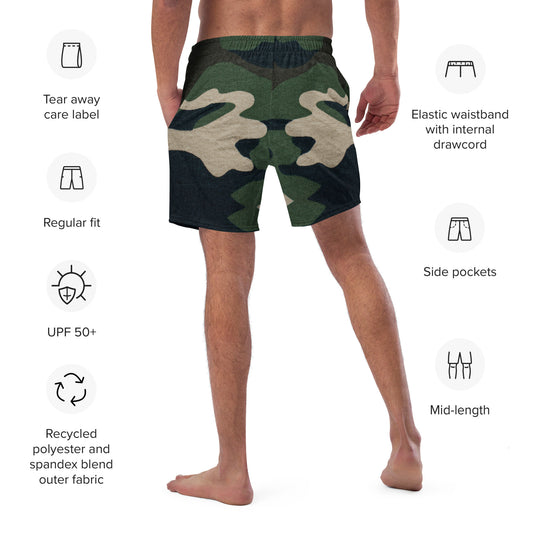 Stylish Custom Designed Large Camouflage Print Swim Trunks for Men