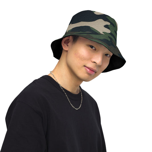 Swanky Black Camouflage Reversible Bucket Hat Active