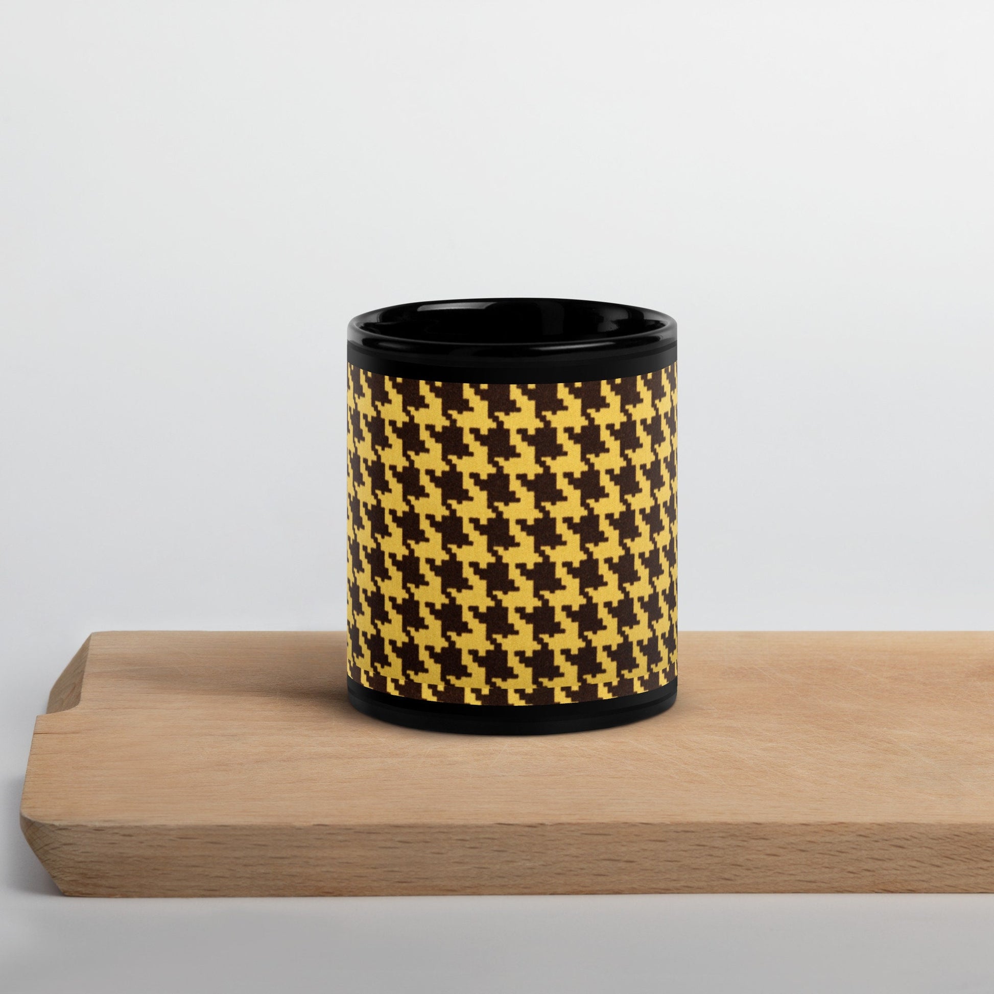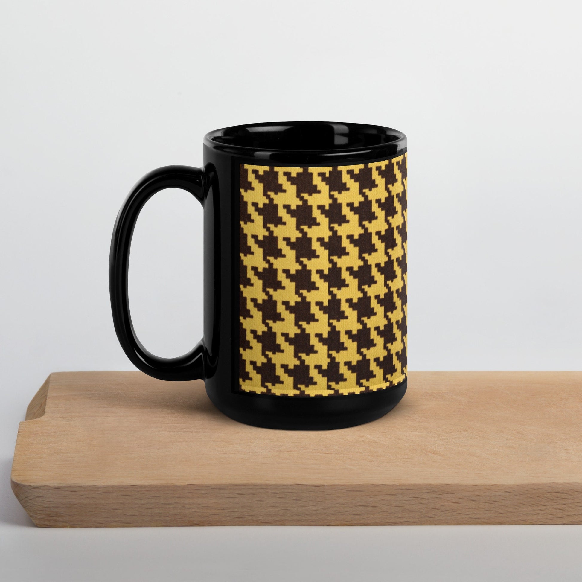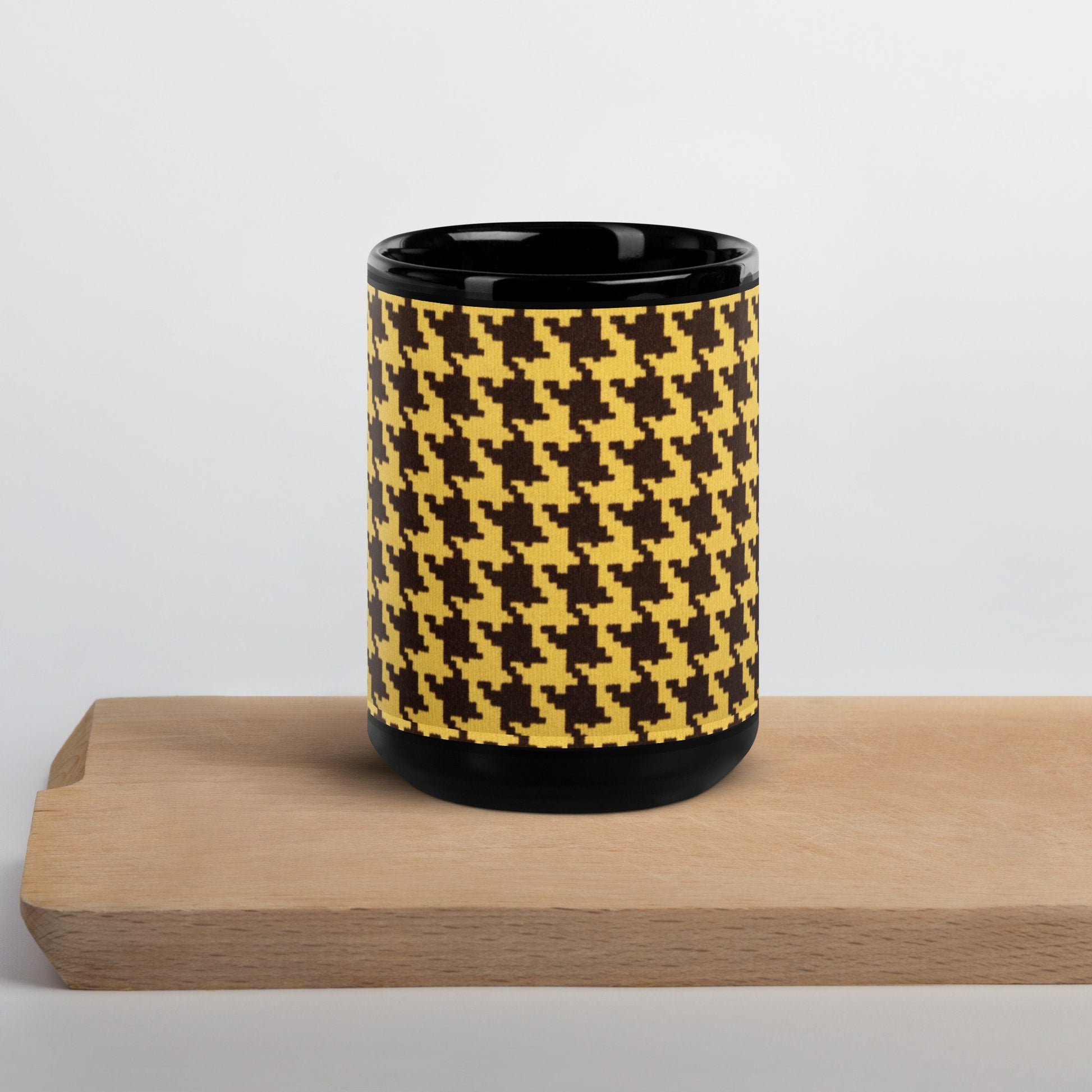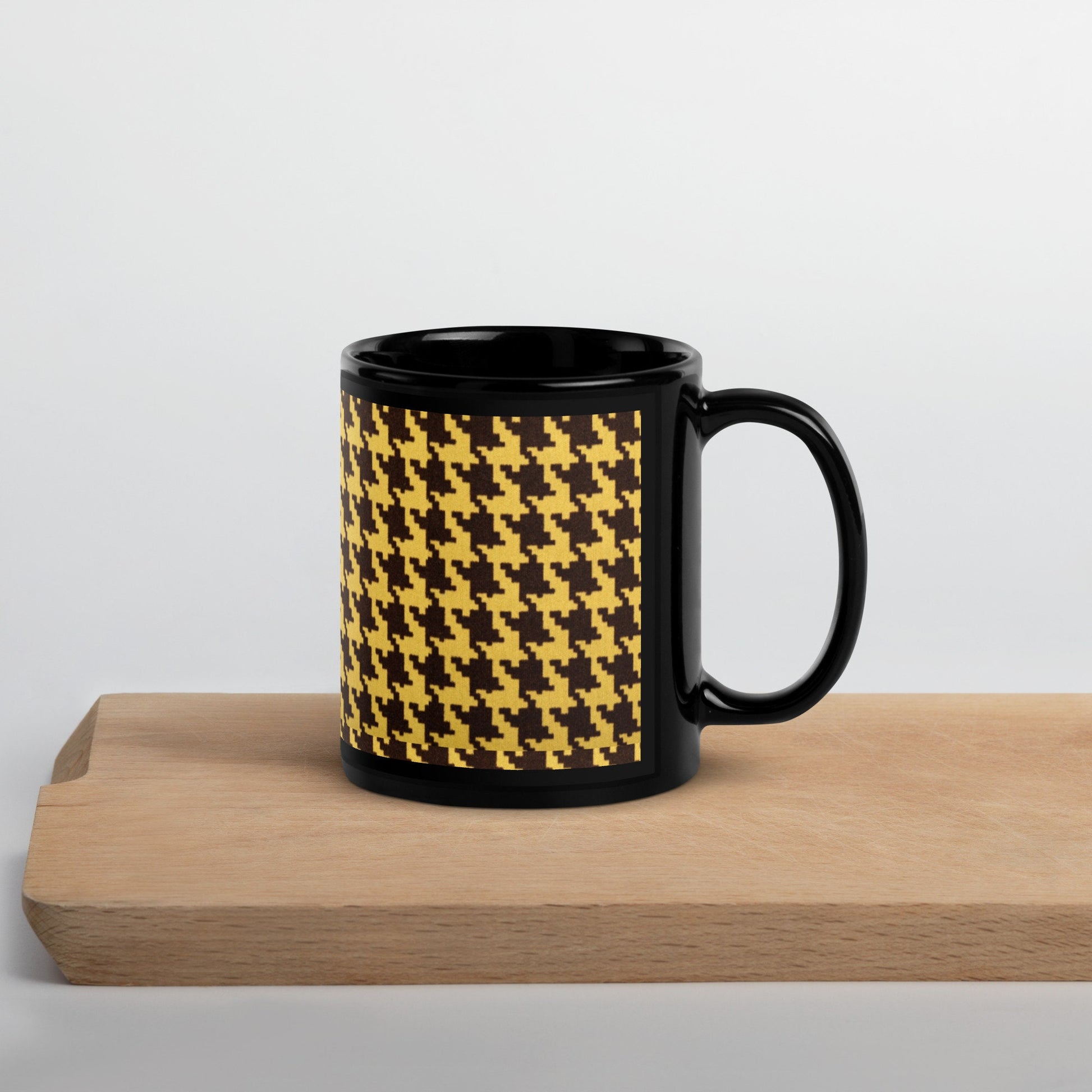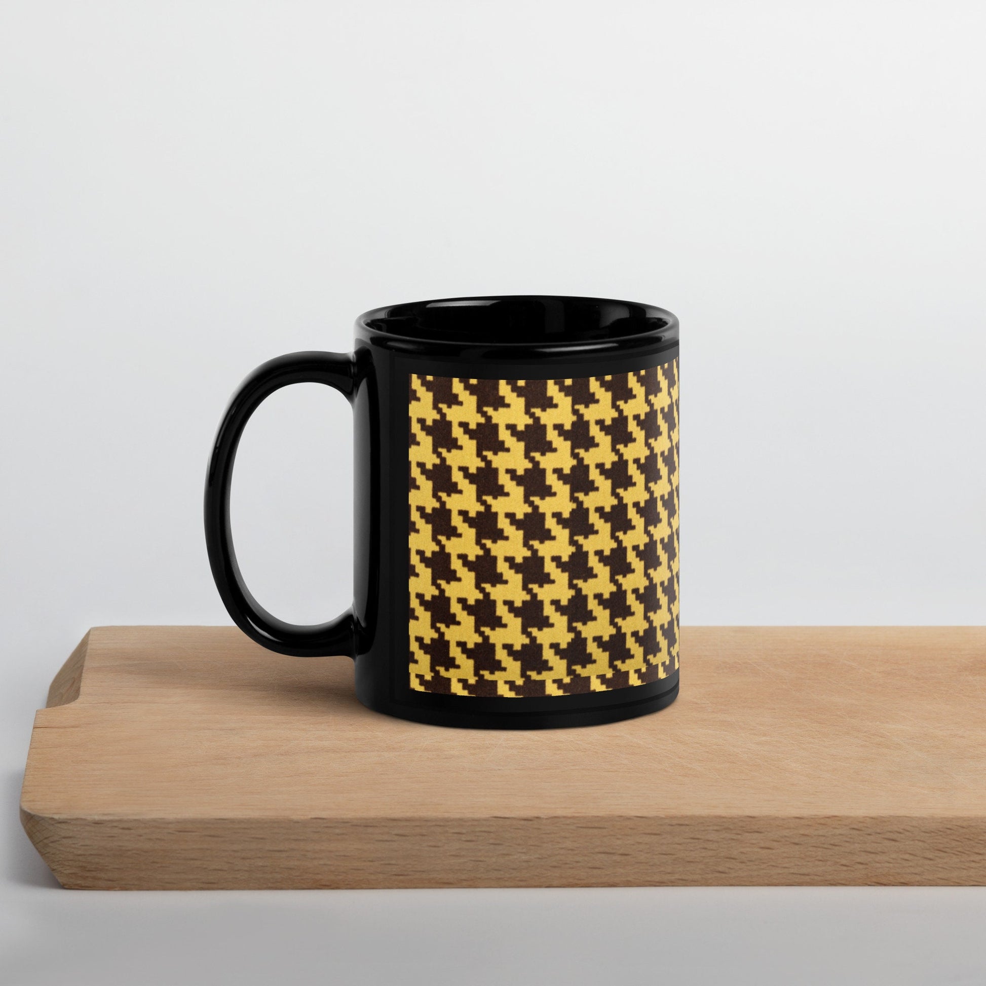 Have your coffee with style using this chic black and gold houndstooth mug. It's sturdy and glossy with a vivid print that'll withstand the microwave and dishwasher. Makes the perfect gift for fashionistas, coffee lovers, anyone who appreciates unique mugs. Pretty, practical and fun.